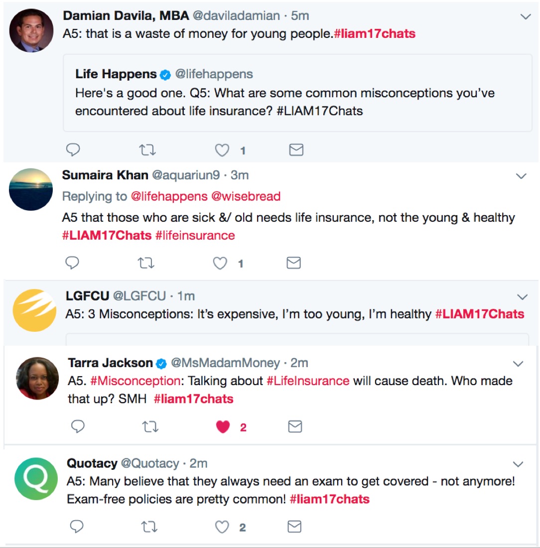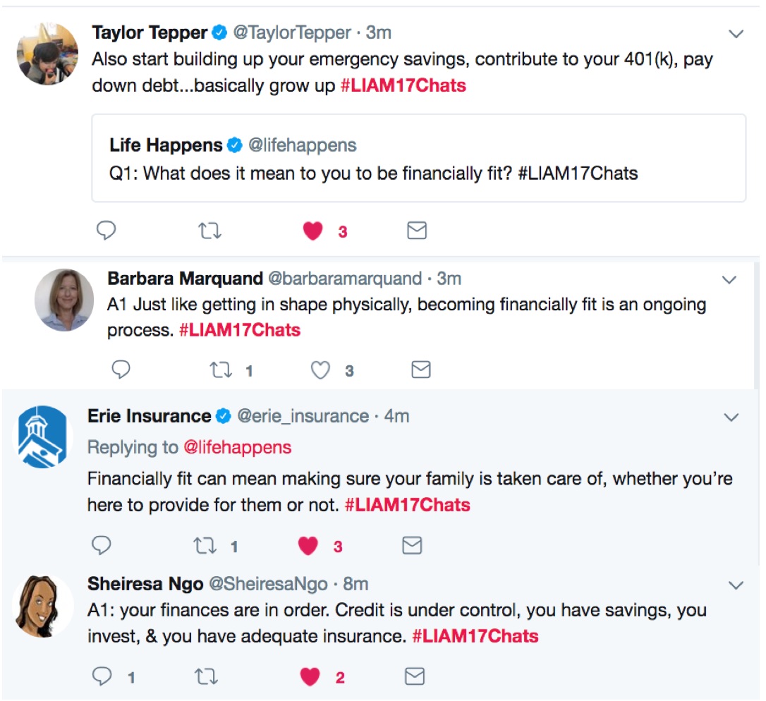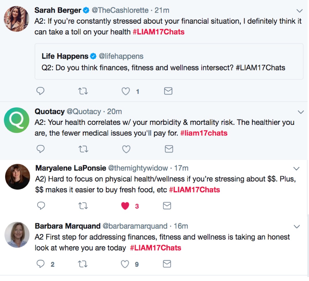 It’s Life Insurance Awareness Month and what better way to celebrate than gathering Twitter friends and experts to talk about financial fitness and life insurance! We spent an hour today (Tuesday, Sept 12) moderating a very lively and insightful conversation. Here are some great highlights from #LIAM17Chats. Thanks to all who joined us!