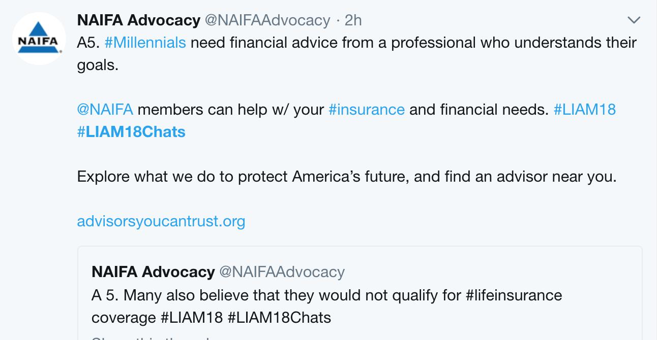 Want to see more of the great stuff that went on, then head over to Twitter and the #LIAM18Chats hashtag. Have a great Life Insurance Awareness Month by getting that coverage—now!